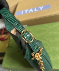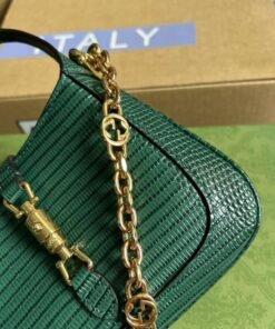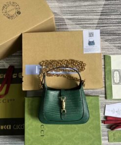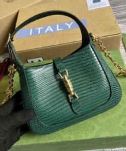 ���专柜‼️(蜥蜴纹牛皮)Jackiemini腋下包,可以斜挎(进口皮质,全铜链条1m,羊皮内里,)Jackie起源于1961年,杰奎琳肯尼迪女士的心头好,曾背着它出席各种场合,从而受到名流们追捧。这款是迷你尺寸,小身材但容量可观,放下iPhone 13 pro max外加钥匙纸巾口红 没问题,唯一配链条肩带的Jackie哦!闪闪惹人爱,所见即所得,是让人看了会忍不住回头再看一眼的包包,并且一眼就能记住。奢华的金色彰显不凡的品味,辣妹风还是名媛风都可驾驭。进口皮质,全铜链条,羊皮内里。型号:675799。尺寸:19x13x13cm。颜色:墨蜥蜴纹牛皮。
