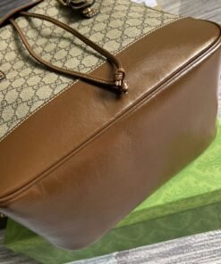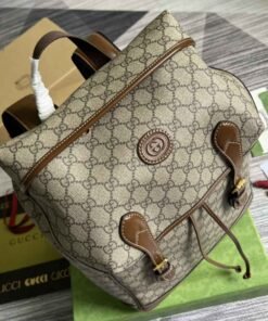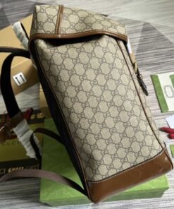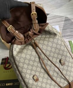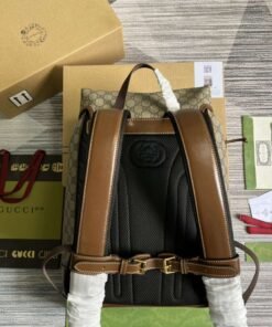 ���专柜‼️棕色饰互扣式双G中号背包,自问世以来,互扣式双G一直都是品牌的标志性元素之一。在这款背包上,这种高辨识度元素呈现为皮革细节,巧妙致敬品牌创始人Guccio Gucci先生。现代风格的黑色GG Supreme帆布与黑色皮革滚边和谐交融,进一步强调单品设计的品牌格调。隐藏 详细信息GG Supreme帆布,环保材料,棉麻衬里,互扣式双G椭圆形皮革标牌。内部:1个带衬垫的笔记本电脑隔层、1个拉链袋,外部:翻盖上带有1个拉链袋。背部和背带加衬设计,翻盖及搭扣开合。型号:696013。尺寸:26(宽)x 43(高)x 18厘米(深)。颜色:啡棕/pvc。
