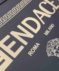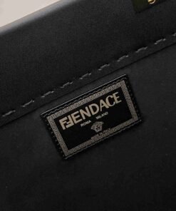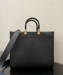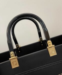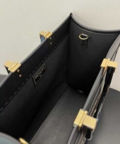 正品级 现货全新FENDAC E系列Sunshine中号手提袋,金色层压印花,饰有Fendac e徽标,是Fend1和Versac e创意合作系列的标志。黑色有机玻璃硬质手柄。设有宽敞的无衬里内部隔层,同色系皮革边缘和金色金属件。配备两个提手和可拆卸肩带,可手提或肩挎,强推入手尺寸35x17x31cm