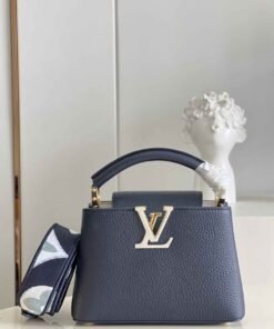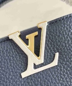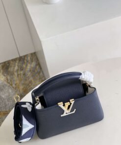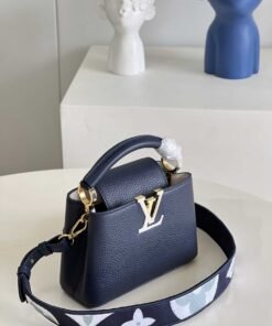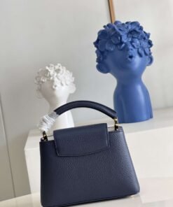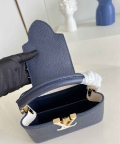 顶级原单【独家实拍 型号M59438海军蓝 迷你】Capucines 迷你手袋 法国进口小牛皮闪亮的金属饰件特有的Capucines搭盖既可收入包内展示字母标识又可外翻 呈现Monogram Flower图案 size:21x14x8 cm