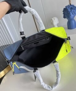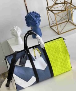 顶级原单【独家实拍M59922拼色】本款 Keepall Bandoulière 50 旅行袋拼接粒面牛皮革和 Monogram 压纹牛皮革,以醒目色块传递航海风尚。大号 LV 字母的之字形缝线源自制帆工艺。详细特征50 x 29 x 23 厘米 (长度 x 高 x 宽) 【温馨提示❤️此款太大,不配包装!】