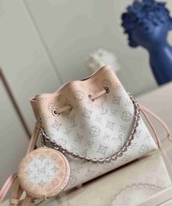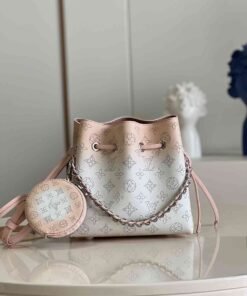 顶级原单【独家实拍M59939粉红】本款 Bella 水桶包取材 Monogram 镂花穿孔小牛皮,展现色彩自上而下渐浓,再以相同材质裁出可拆卸零钱包,初夏情调不言而喻。尺寸:19 x 22 x 14CM .