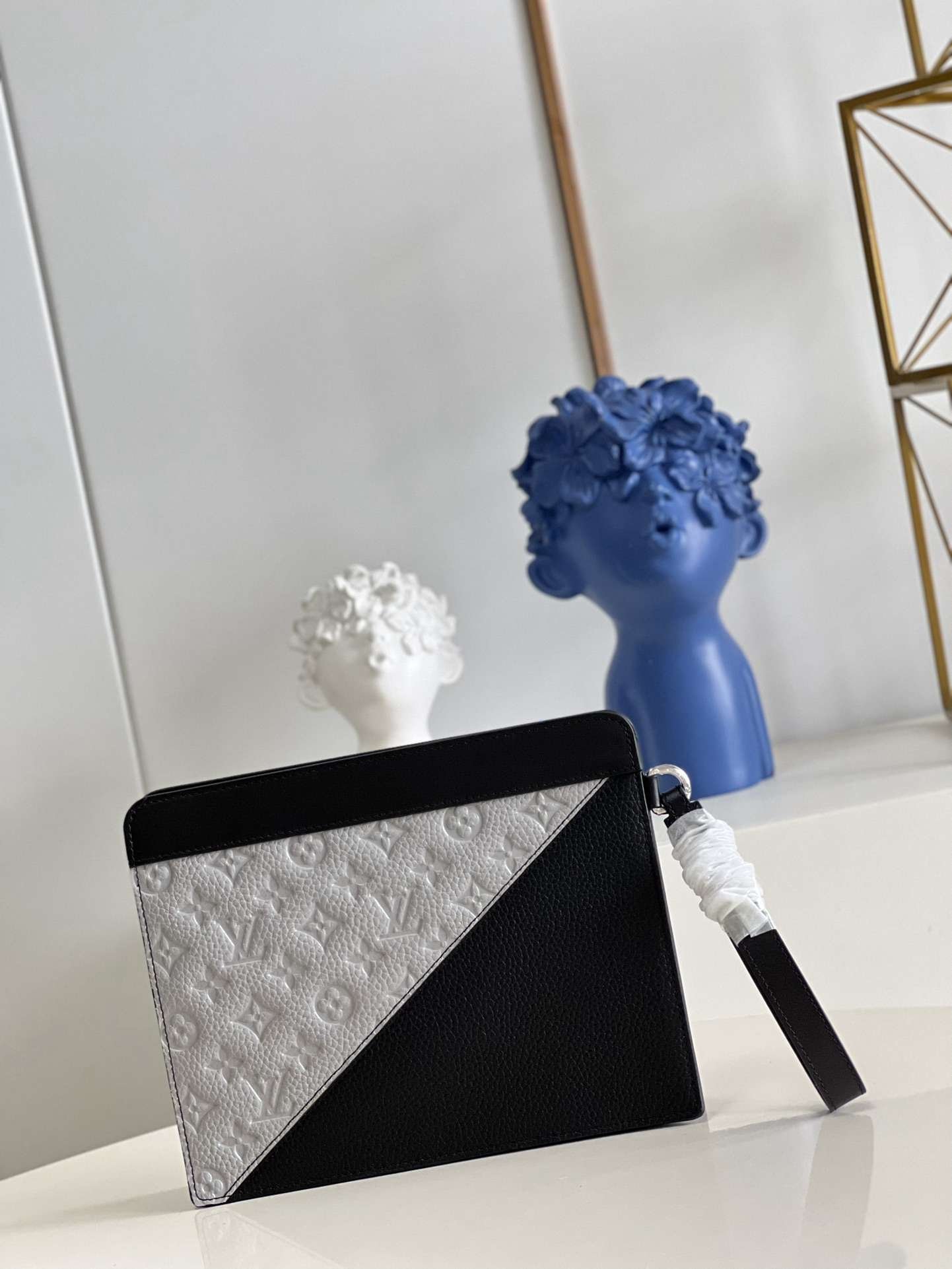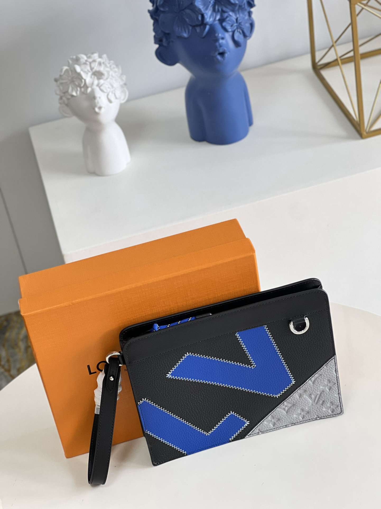 顶级原单【独家实拍M81310】本款 Standing Pouch 手拿包拼接素面牛皮革和 Monogram 压纹 Taurillon 皮革,渲染醒目色彩。LV 标识的之字形缝线源自制帆工艺,可拆卸腕带方便日常随行。详细特征21 x 27 x 5 厘米 (长度 x 高 x 宽)